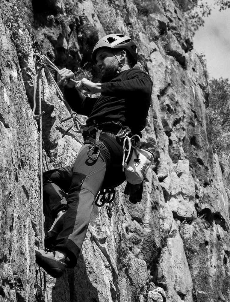 Trabajo desde una relación íntima con la naturaleza y los seres que la habitan. Mi obra reside en lugares donde el tiempo no existe y el silencio se impone, en el ruido blanco que inunda el espacio de los últimos heleros derritiéndose en la distancia, o en el vuelo audaz de un buitre que resuena a través de las gargantas calizas. Me dejo inundar por el entorno, mimetizarme en silencio con él, ser un habitante más que pulula y atraviesa el espacio. Exploro la montaña desde la escalada y continúo formándome para integrar ese contacto directo con el territorio en mi proceso creativo. Mi trabajo se construye desde la pulsión de lo salvaje, la soledad y la contemplación. Crear en este contexto es un acto de escucha. Cada instante vivido en la montaña es una forma de conocimiento, no racional sino sensible, donde la obra emerge como huella de esa presencia compartida entre el ser humano y la naturaleza. La imagen auténtica no se impone como objeto definido; actúa como un ámbito donde algo acontece, donde lo visible resuena más allá de sus límites formales. Contemplar no equivale a analizar ni a poseer lo mirado, sino a permitir que lo que se muestra nos atraviese y transforme. Esta experiencia, despojada de toda voluntad de control o interpretación, requiere una atención silenciosa, una presencia que no busca comprender, sino estar. Desde esa actitud, la creación se convierte en un modo de habitar lo que acontece. Mi camino está en crecimiento y mi trabajo también; en cada obra intento que la mirada conserve la misma honestidad con la que me acerco al paisaje.